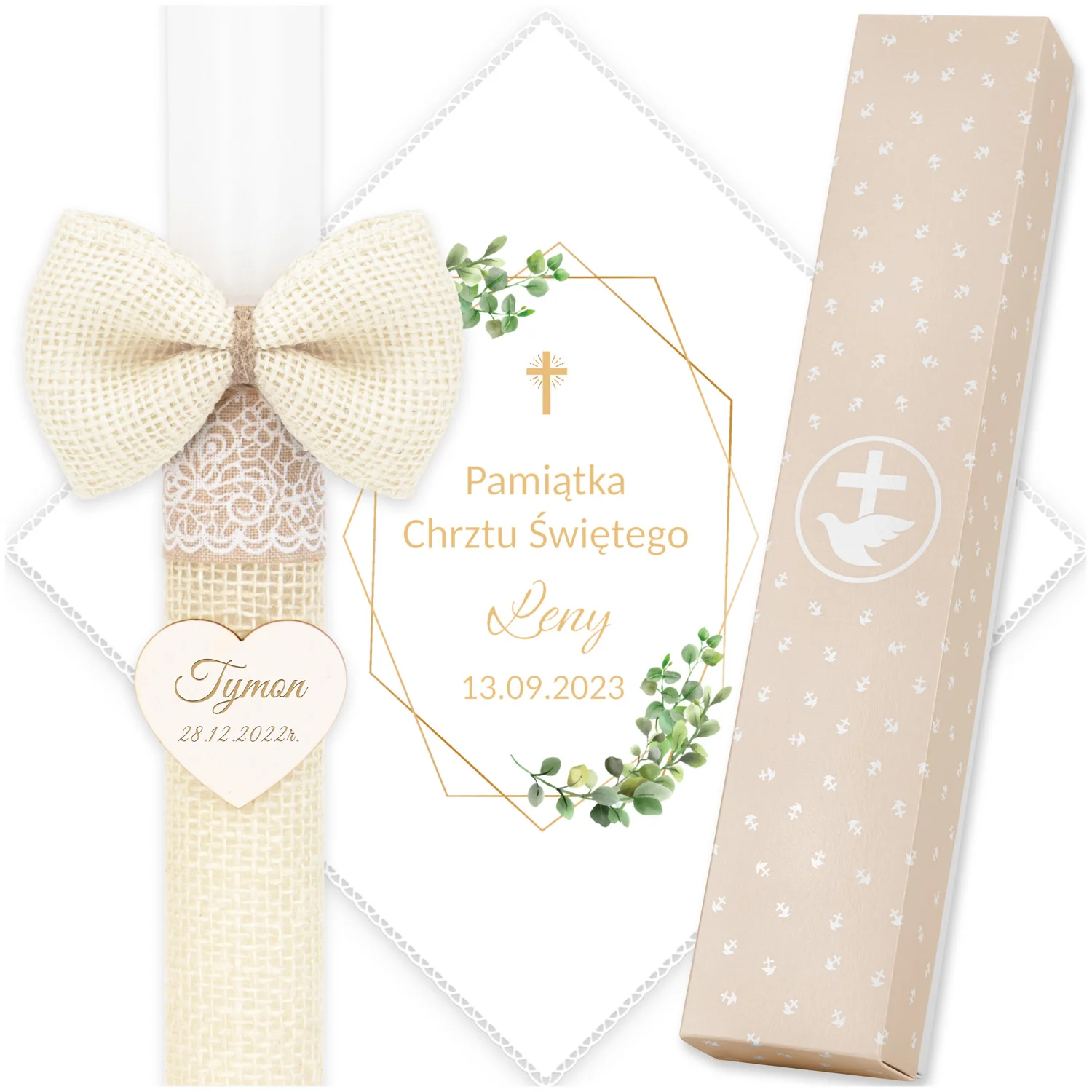 ✅ świeca na chrzest wraz z personalizacją (imieniem dziecka i datą chrztu),