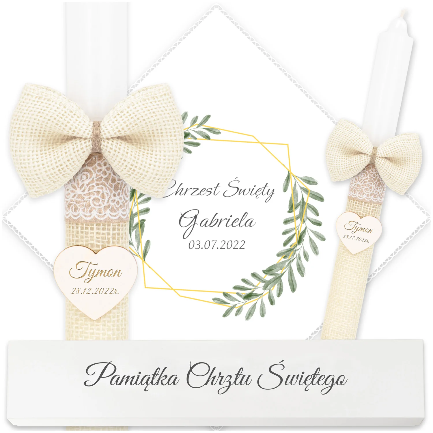 ✅ świeca na chrzest wraz z personalizacją (imieniem dziecka i datą chrztu),