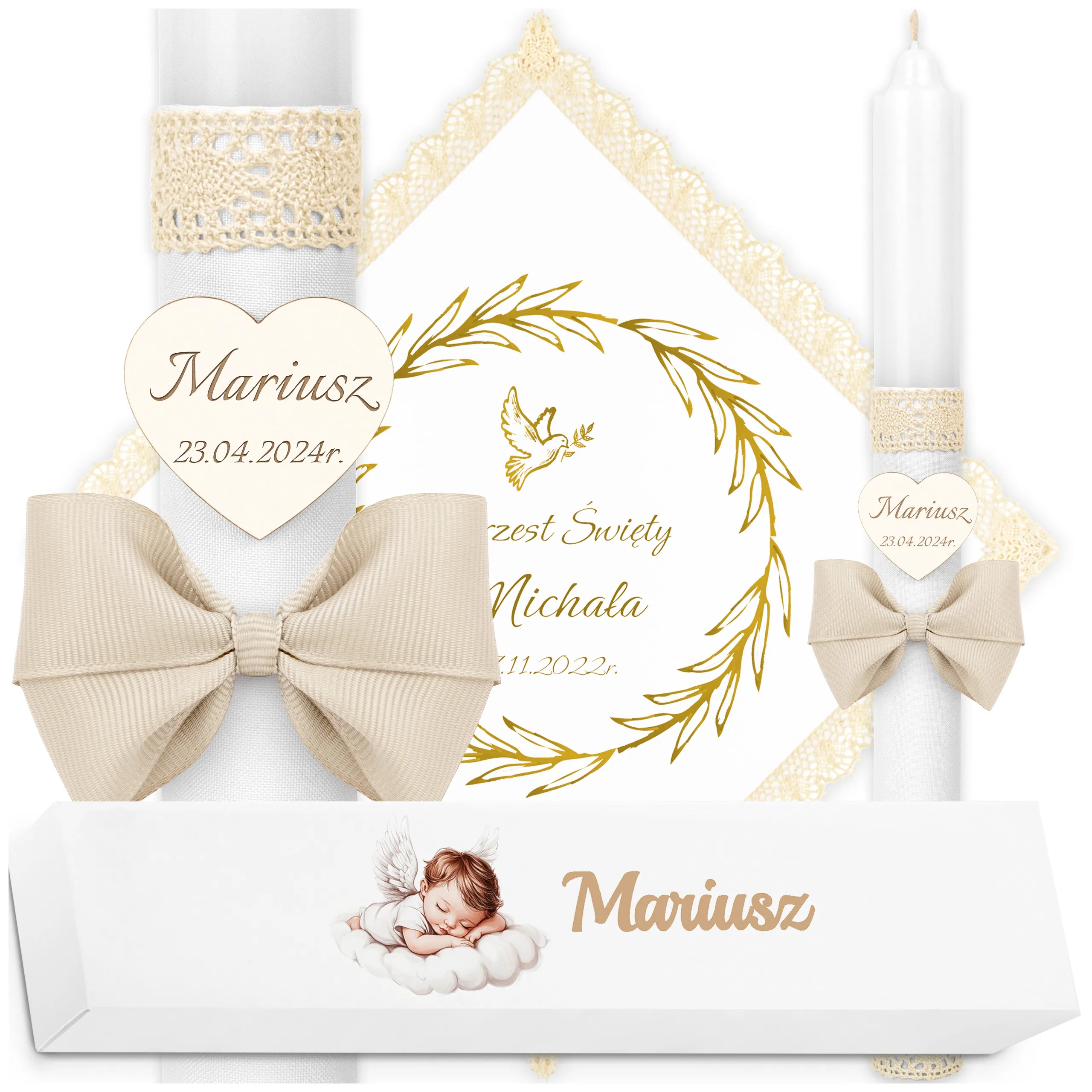 ✅ świeca na chrzest wraz z personalizacją (imieniem dziecka i datą chrztu),