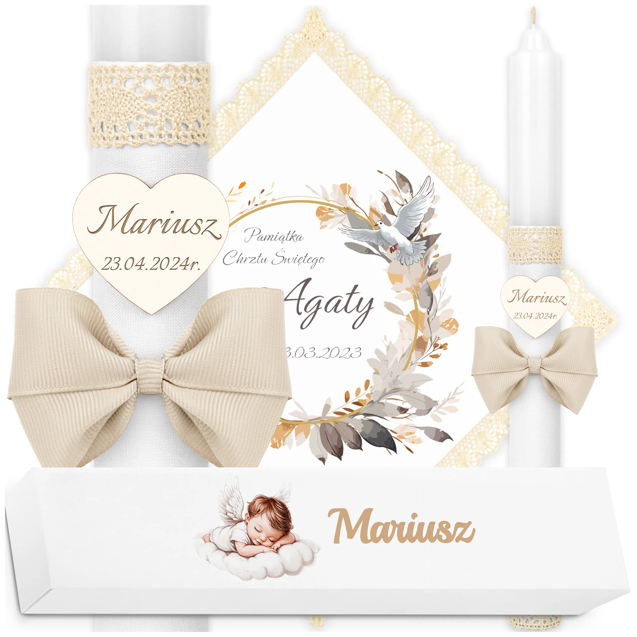 ✅ świeca na chrzest wraz z personalizacją (imieniem dziecka i datą chrztu),