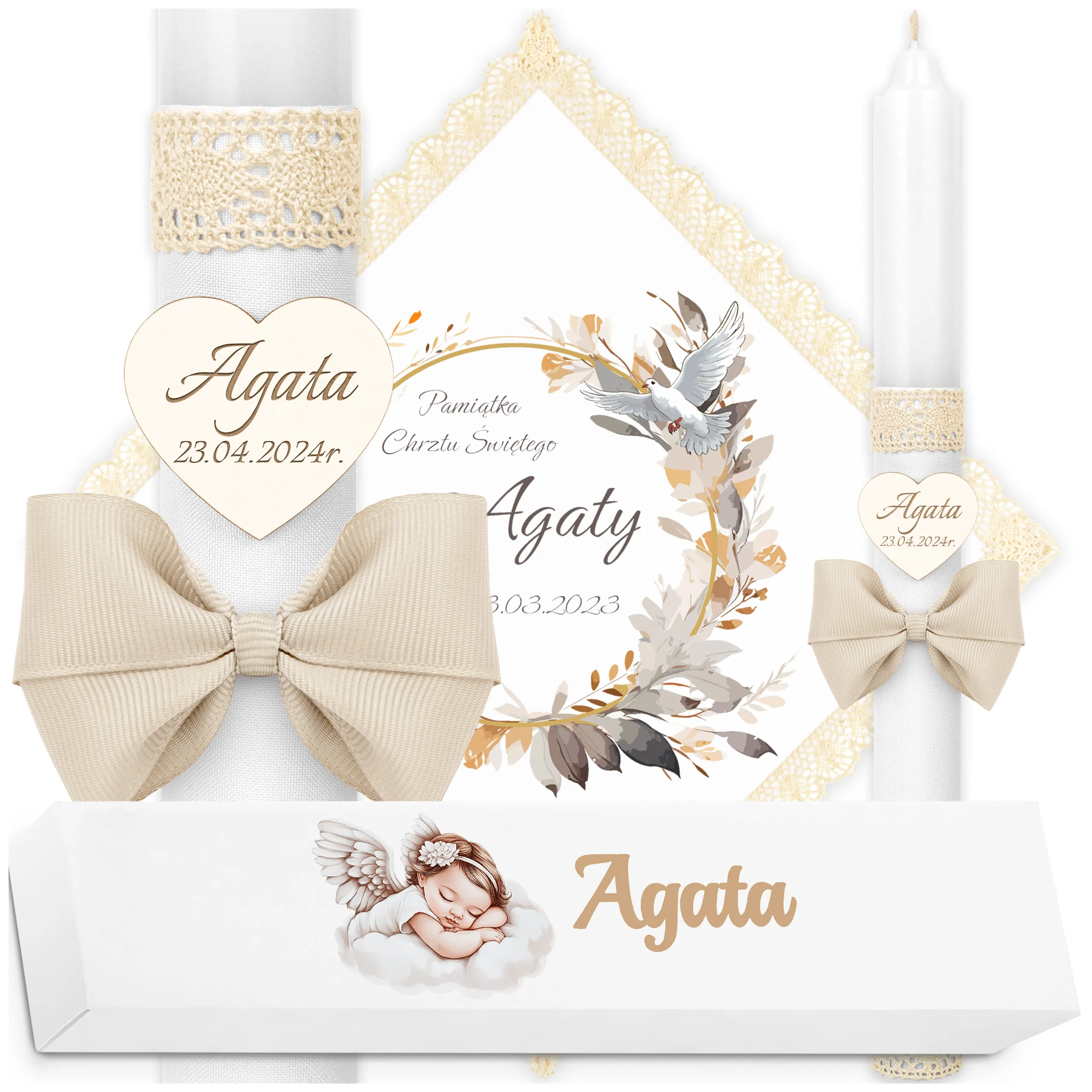 ✅ świeca na chrzest wraz z personalizacją (imieniem dziecka i datą chrztu),