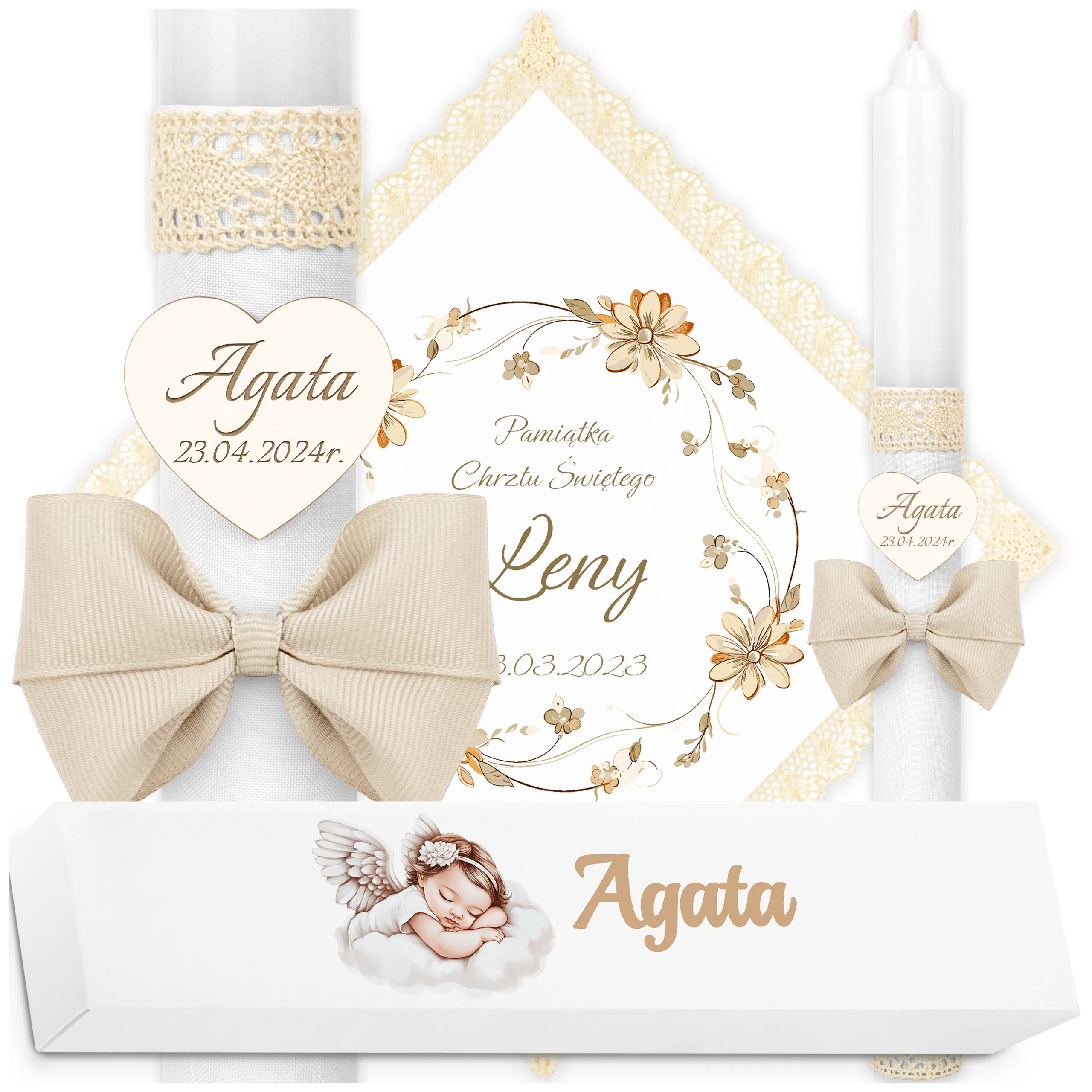 ✅ świeca na chrzest wraz z personalizacją (imieniem dziecka i datą chrztu),