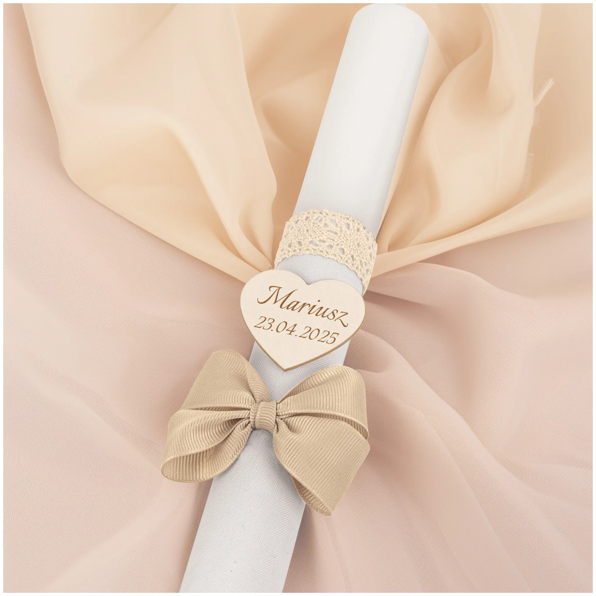 ✅ kokarda na świecy - materiał satynowy w kolorze beżowym,