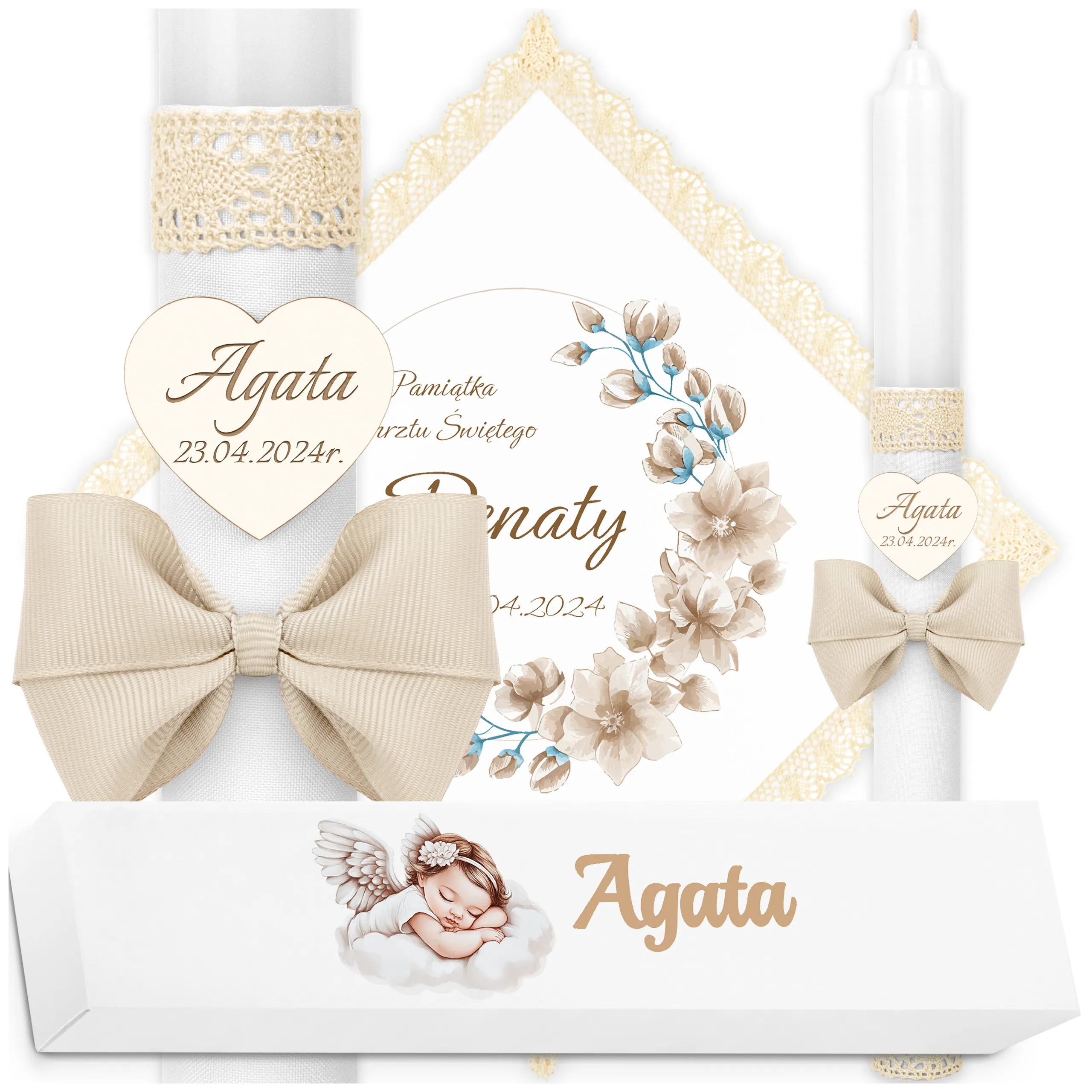✅ świeca na chrzest wraz z personalizacją (imieniem dziecka i datą chrztu),