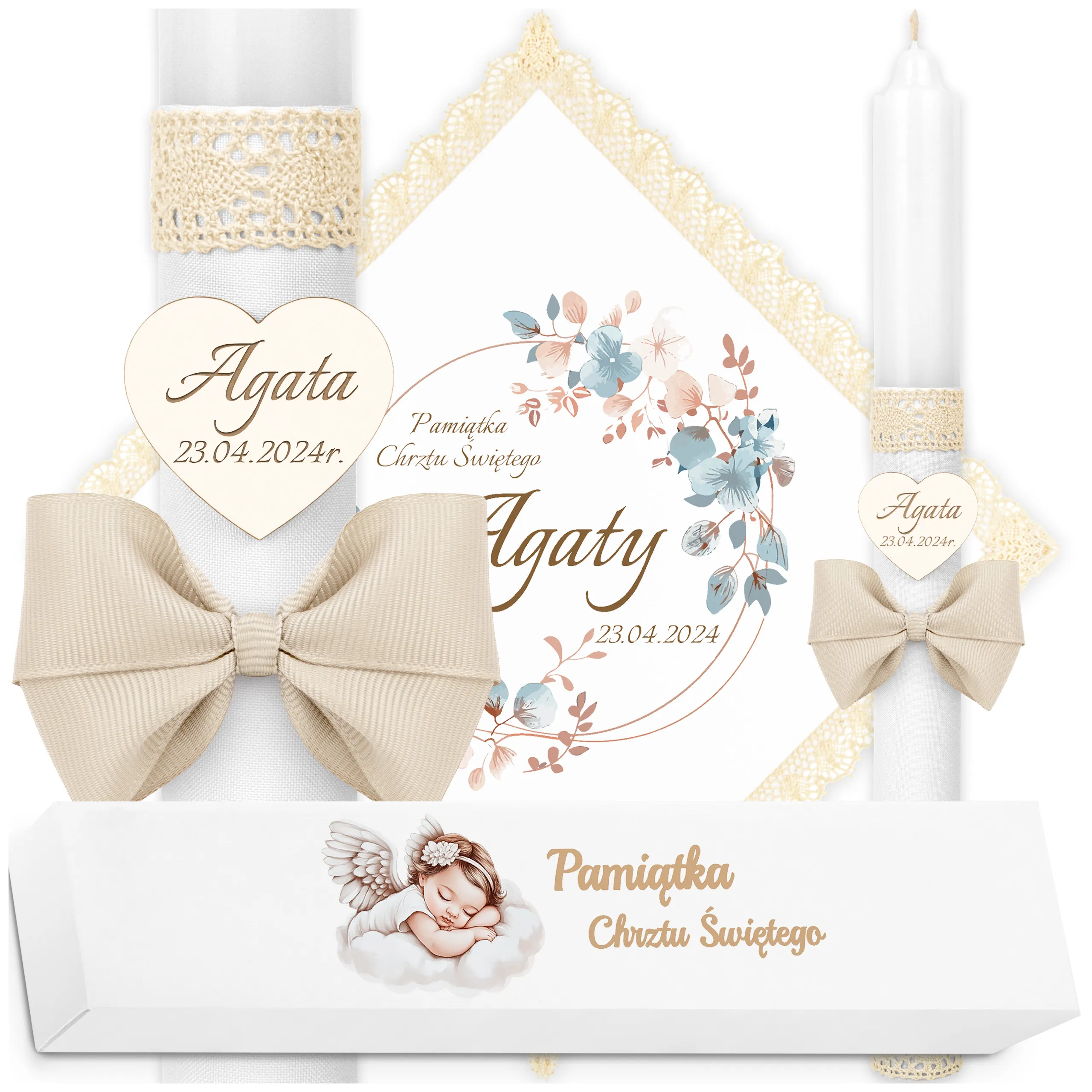 ✅ świeca na chrzest wraz z personalizacją (imieniem dziecka i datą chrztu),