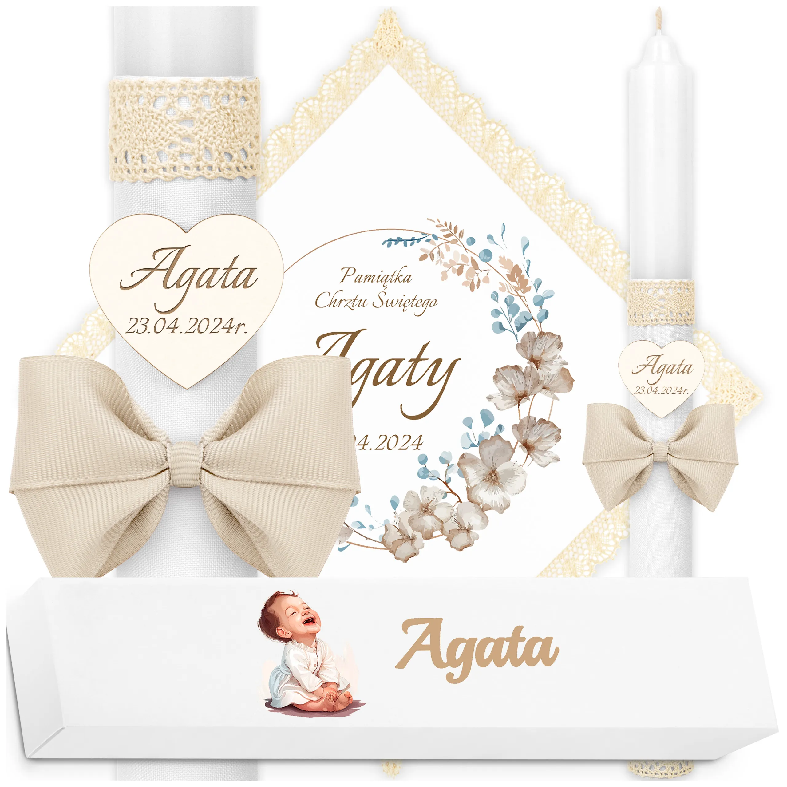 ✅ świeca na chrzest wraz z personalizacją (imieniem dziecka i datą chrztu),