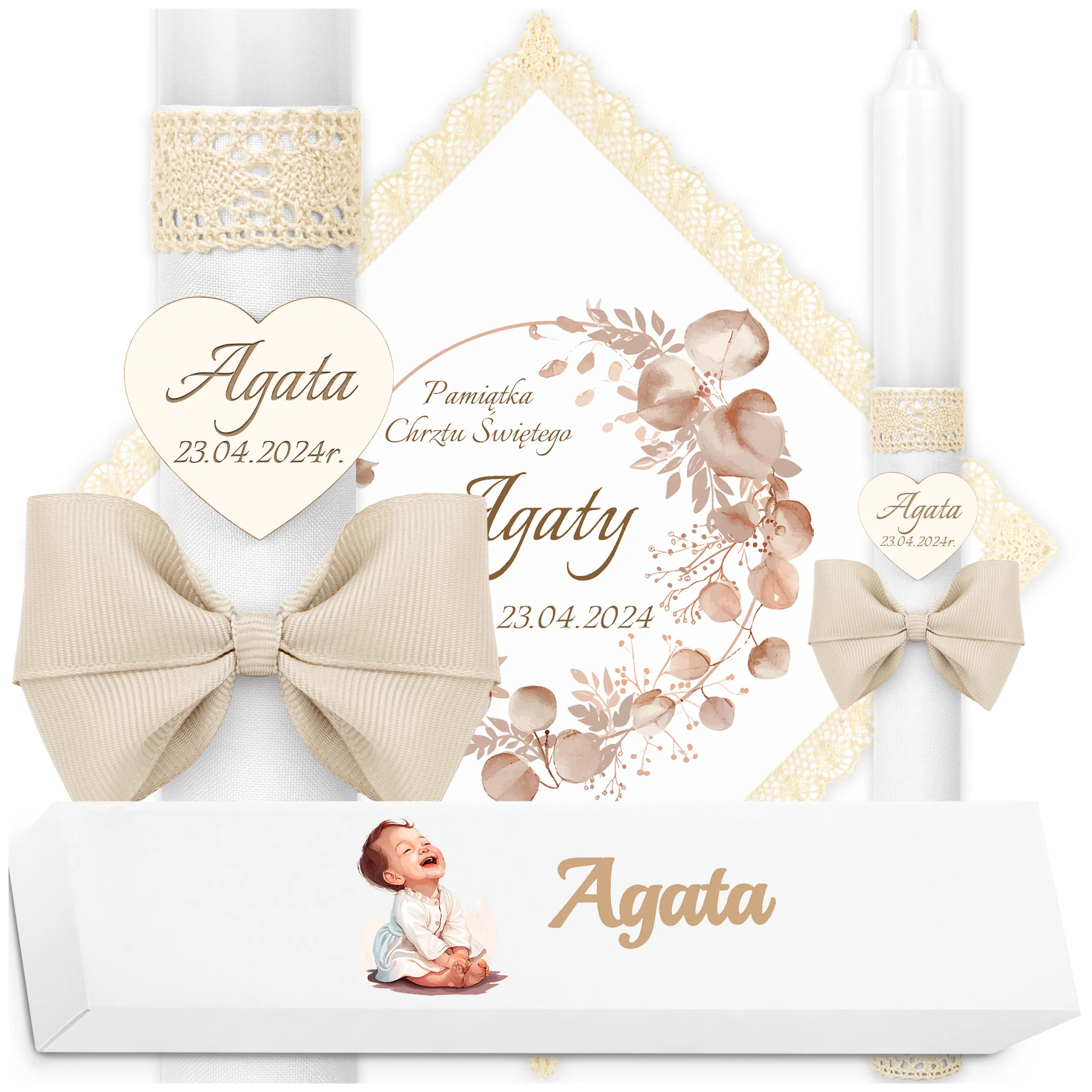 ✅ świeca na chrzest wraz z personalizacją (imieniem dziecka i datą chrztu),