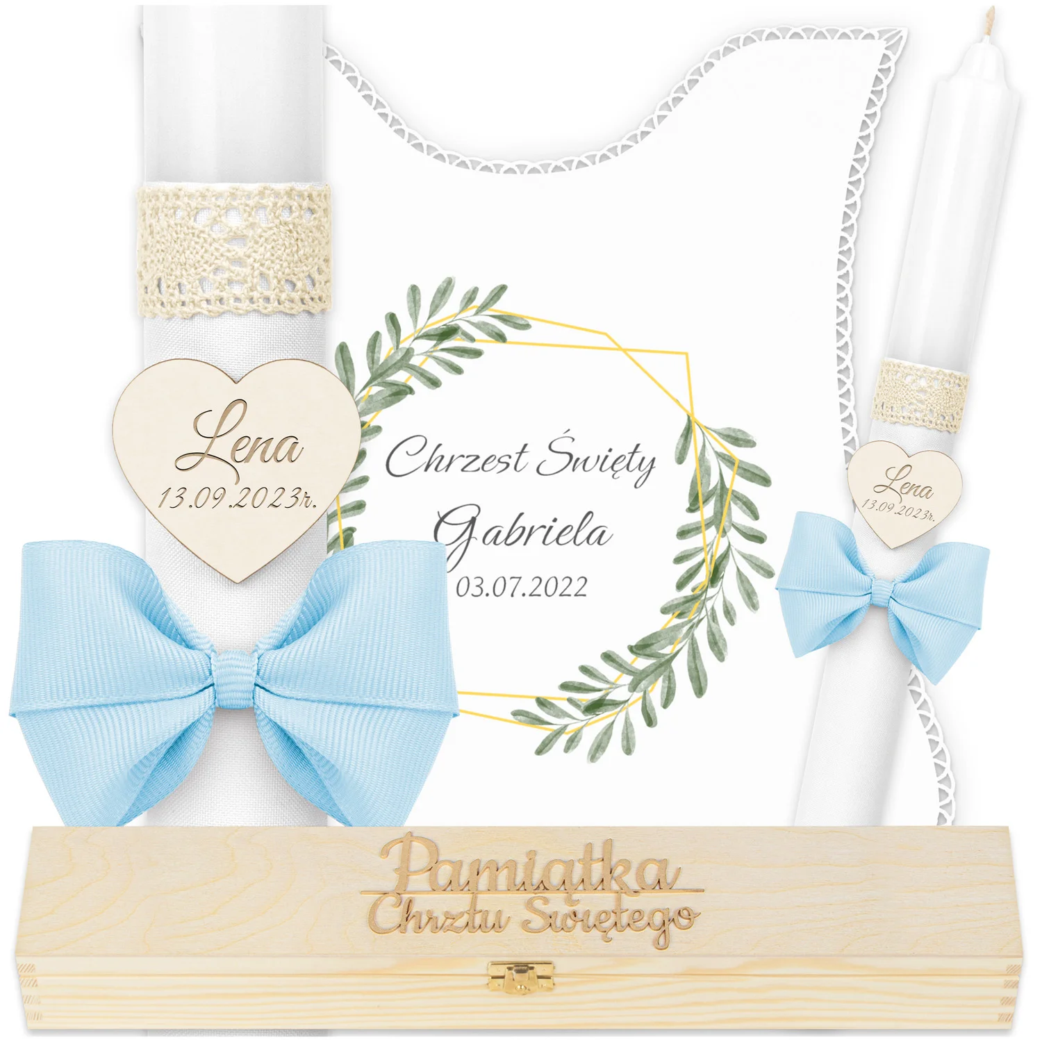 ✅ świeca na chrzest wraz z personalizacją (imieniem dziecka i datą chrztu),