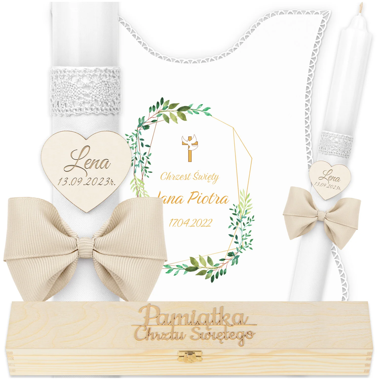✅ świeca na chrzest wraz z personalizacją (imieniem dziecka i datą chrztu),