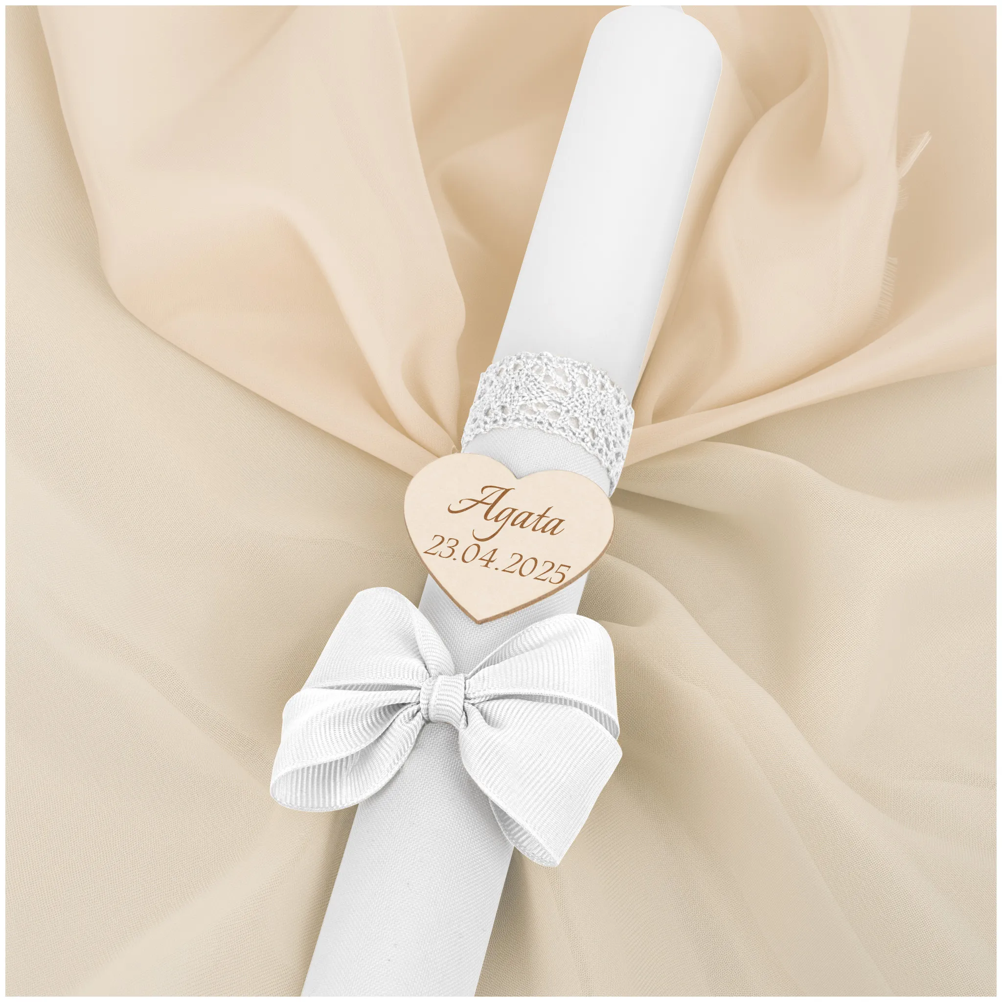✅ kokarda na świecy - materiał satynowy w kolorze białym,