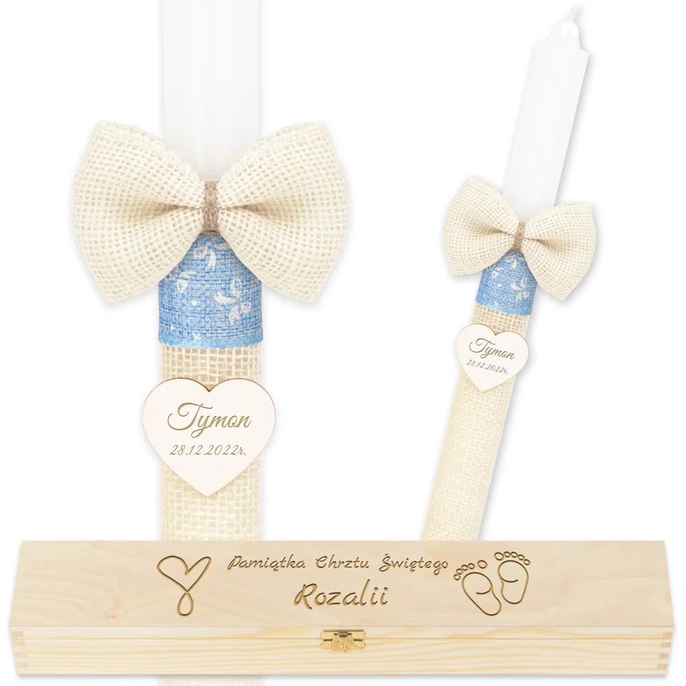 Ręcznie zdobiona Świeca do Chrztu Świętego wraz z pudełkiem.