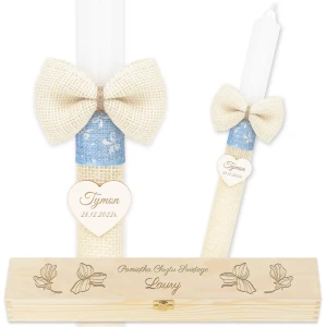 Świeca chrzcielna to element niezbędny podczas Ceremonii Chrztu. Oryginalna, personalizowana, przygotowana specjalnie na Państwa zamówienie świeca będzie stanowiła nie tylko element używany podczas Uroczystości Chrztu, czy Komunii Świętej, będzie też piękną pamiątką na długie lata.
