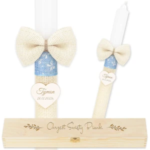 Świeca chrzcielna to element niezbędny podczas Ceremonii Chrztu. Oryginalna, personalizowana, przygotowana specjalnie na Państwa zamówienie świeca będzie stanowiła nie tylko element używany podczas Uroczystości Chrztu, czy Komunii Świętej, będzie też piękną pamiątką na długie lata.