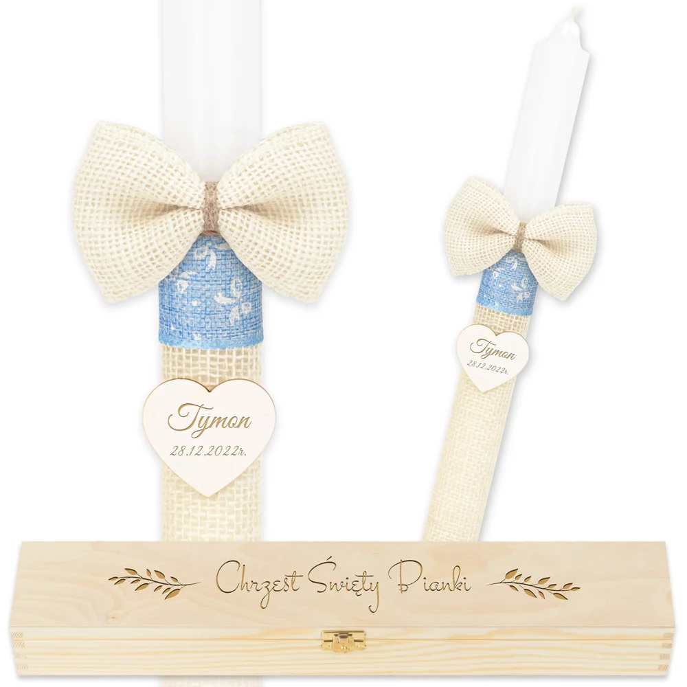 Ręcznie zdobiona Świeca do Chrztu Świętego wraz z pudełkiem.