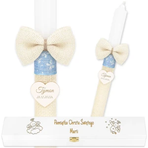 Świeca chrzcielna to element niezbędny podczas Ceremonii Chrztu. Oryginalna, personalizowana, przygotowana specjalnie na Państwa zamówienie świeca będzie stanowiła nie tylko element używany podczas Uroczystości Chrztu, czy Komunii Świętej, będzie też piękną pamiątką na długie lata.