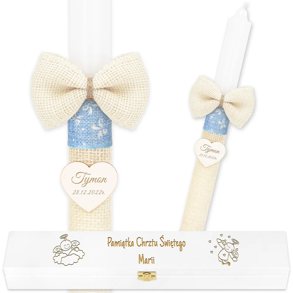 Ręcznie zdobiona Świeca do Chrztu Świętego wraz z pudełkiem.