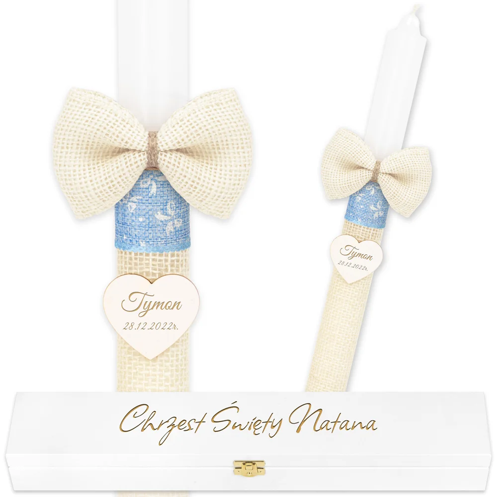 Ręcznie zdobiona Świeca do Chrztu Świętego wraz z pudełkiem.