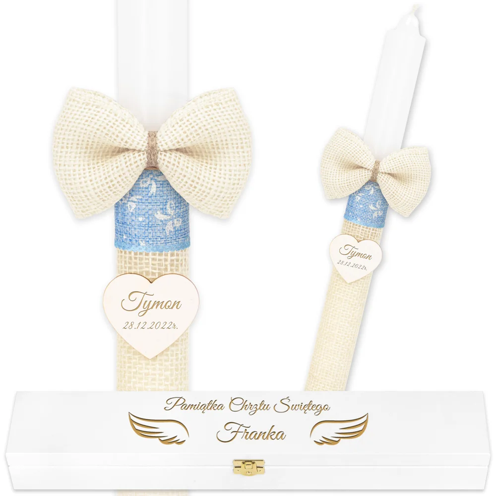 Ręcznie zdobiona Świeca do Chrztu Świętego wraz z pudełkiem.