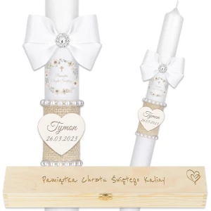 Świeca chrzcielna to element niezbędny podczas Ceremonii Chrztu. Oryginalna, personalizowana, przygotowana specjalnie na Państwa zamówienie świeca będzie stanowiła nie tylko element używany podczas Uroczystości Chrztu, czy Komunii Świętej, będzie też piękną pamiątką na długie lata.