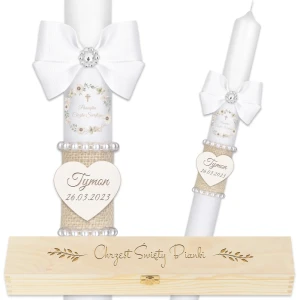 Świeca chrzcielna to element niezbędny podczas Ceremonii Chrztu. Oryginalna, personalizowana, przygotowana specjalnie na Państwa zamówienie świeca będzie stanowiła nie tylko element używany podczas Uroczystości Chrztu, czy Komunii Świętej, będzie też piękną pamiątką na długie lata.