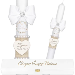 Świeca chrzcielna to element niezbędny podczas Ceremonii Chrztu. Oryginalna, personalizowana, przygotowana specjalnie na Państwa zamówienie świeca będzie stanowiła nie tylko element używany podczas Uroczystości Chrztu, czy Komunii Świętej, będzie też piękną pamiątką na długie lata.