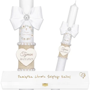 Świeca chrzcielna to element niezbędny podczas Ceremonii Chrztu. Oryginalna, personalizowana, przygotowana specjalnie na Państwa zamówienie świeca będzie stanowiła nie tylko element używany podczas Uroczystości Chrztu, czy Komunii Świętej, będzie też piękną pamiątką na długie lata.