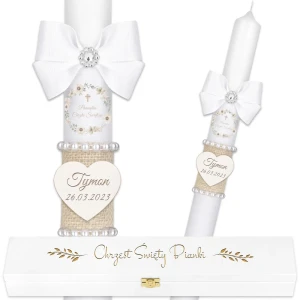 Świeca chrzcielna to element niezbędny podczas Ceremonii Chrztu. Oryginalna, personalizowana, przygotowana specjalnie na Państwa zamówienie świeca będzie stanowiła nie tylko element używany podczas Uroczystości Chrztu, czy Komunii Świętej, będzie też piękną pamiątką na długie lata.