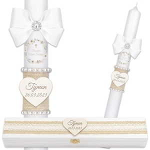 Ręcznie zdobiona Świeca do Chrztu Świętego wraz z pudełkiem.
