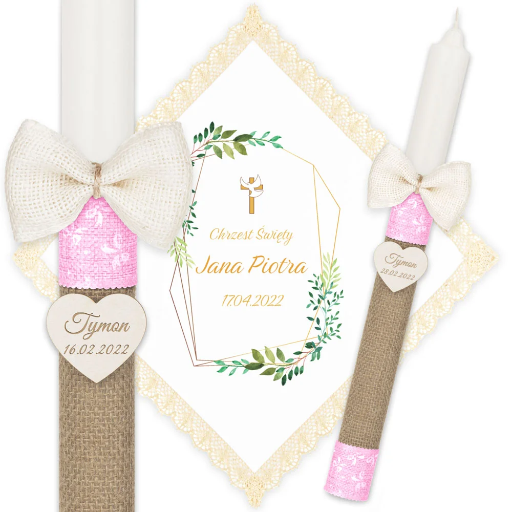 ✅ personalizacja (imię oraz data chrztu) na świecy oraz szatce.