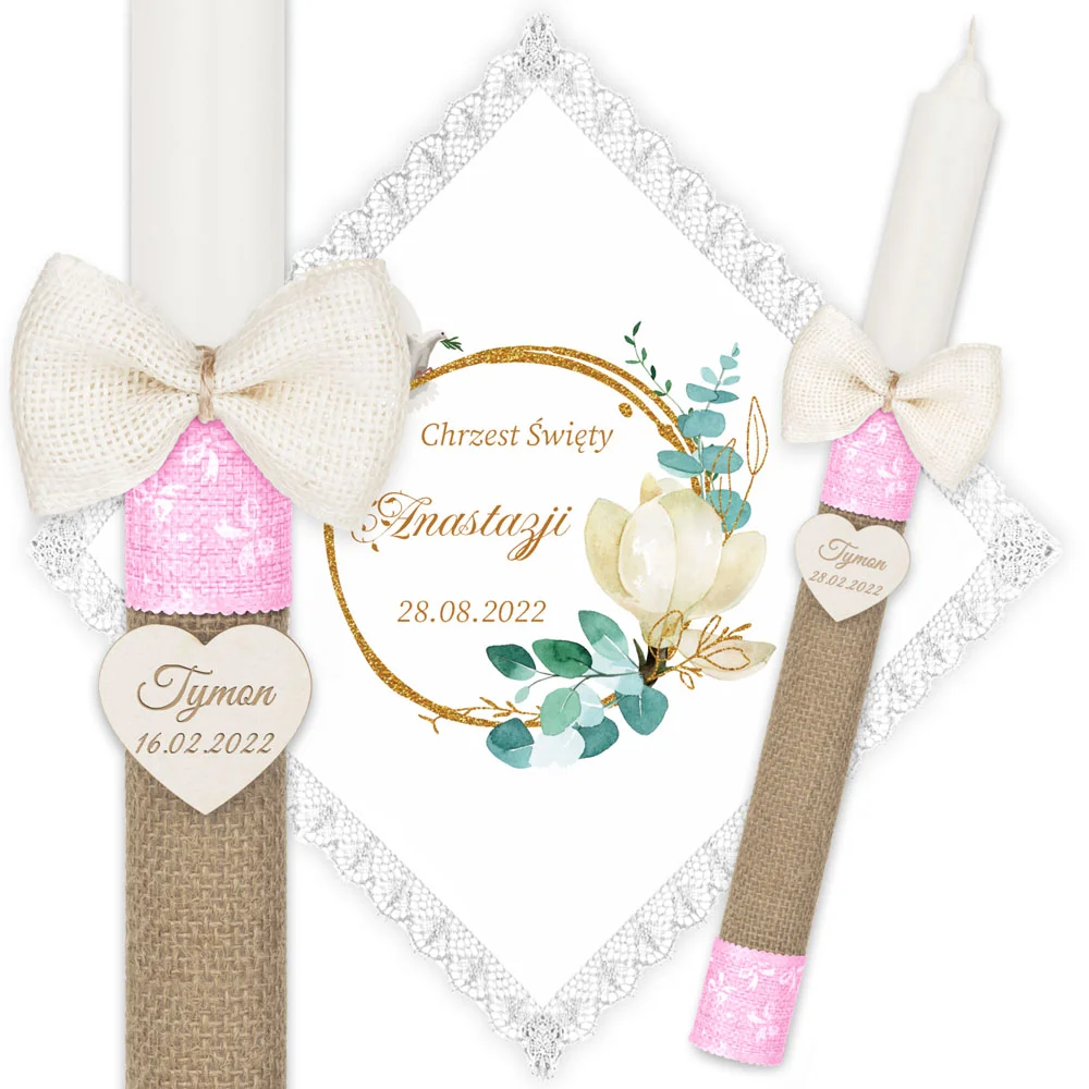 ✅ świeca na chrzest wraz z personalizacją (imieniem dziecka i datą chrztu),