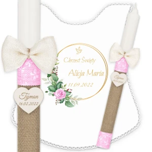 ✅ personalizacja (imię oraz data chrztu) na świecy oraz szatce.