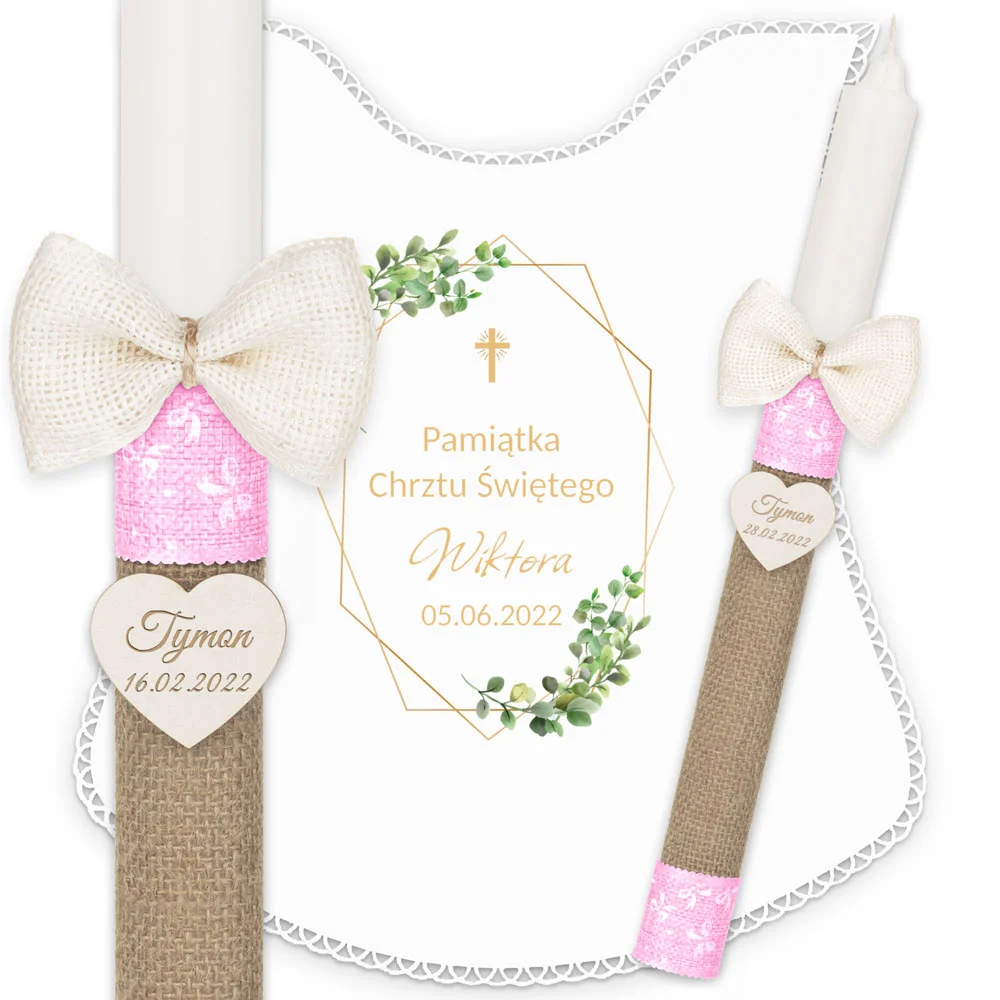 ✅ personalizacja (imię oraz data chrztu) na świecy oraz szatce.