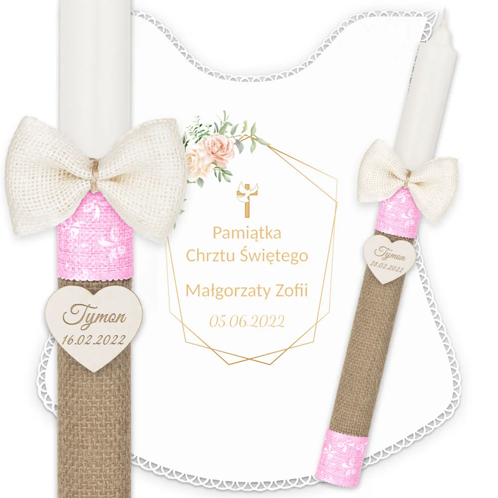 ✅ personalizacja (imię oraz data chrztu) na świecy oraz szatce.