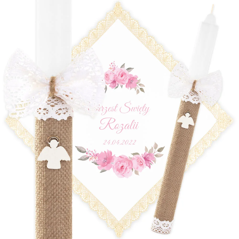 ✅ personalizacja (imię oraz data chrztu) na świecy oraz szatce.