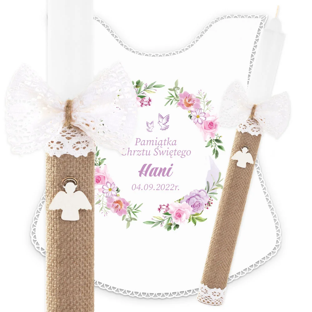 ✅ personalizacja (imię oraz data chrztu) na świecy oraz szatce.