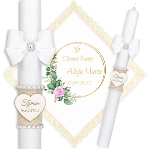 ✅ personalizacja (imię oraz data chrztu) na świecy oraz szatce.