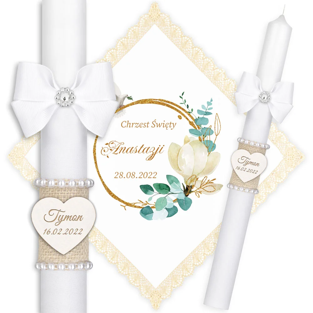 ✅ świeca na chrzest wraz z personalizacją (imieniem dziecka i datą chrztu),