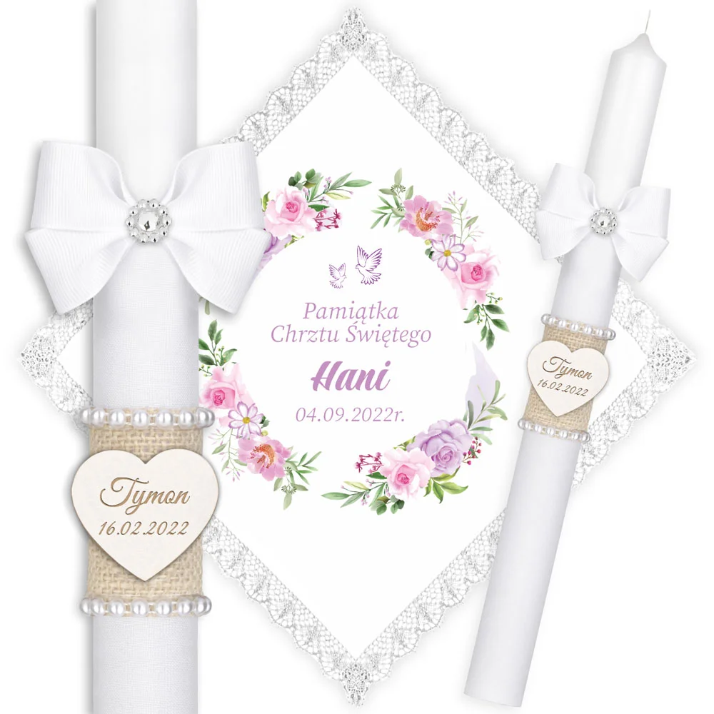 ✅ świeca na chrzest wraz z personalizacją (imieniem dziecka i datą chrztu),