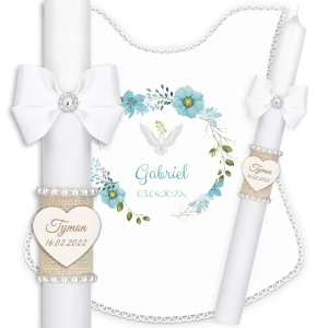 ✅ personalizacja (imię oraz data chrztu) na świecy oraz szatce.