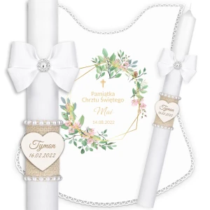 ✅ personalizacja (imię oraz data chrztu) na świecy oraz szatce.