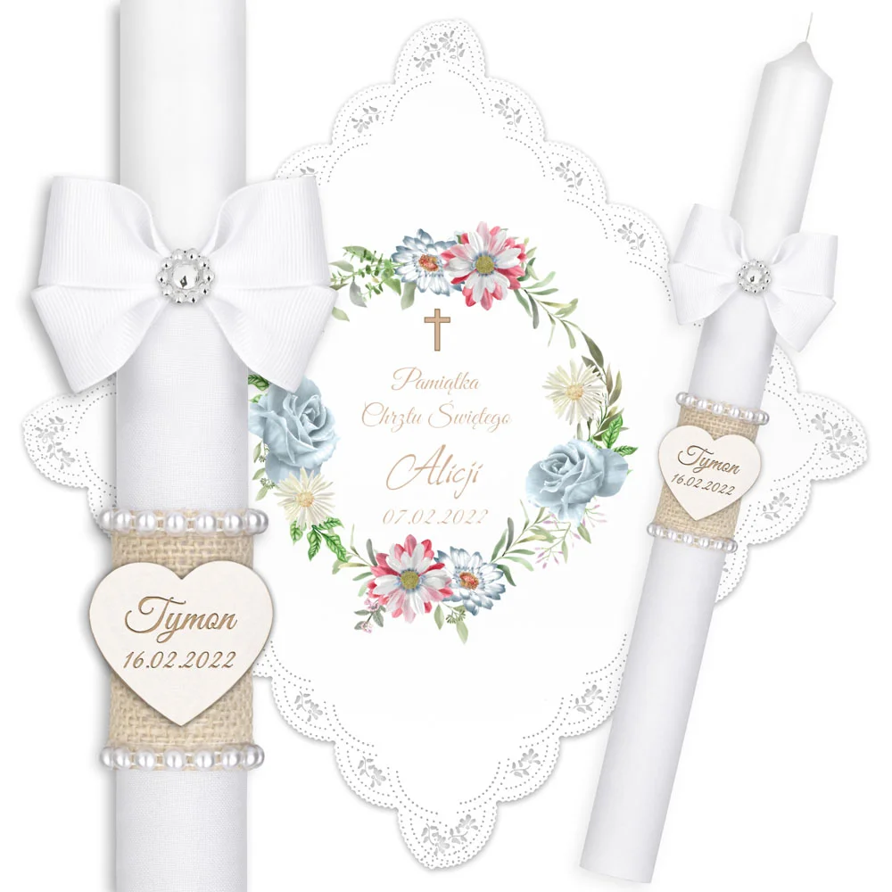 ✅ świeca na chrzest wraz z personalizacją (imieniem dziecka i datą chrztu),