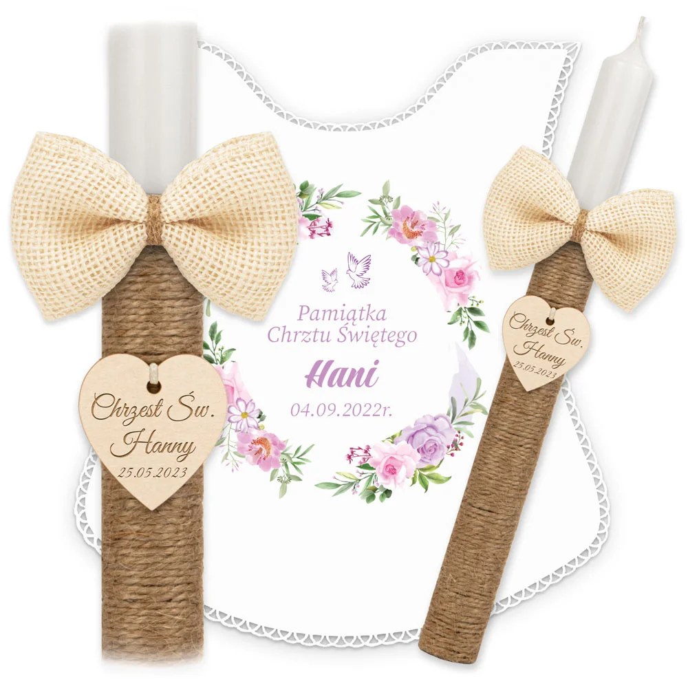 ✅ personalizacja (imię oraz data chrztu) na świecy oraz szatce.