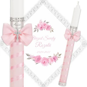 Ręcznie zdobiony zestaw Świeca oraz szatka do Chrztu Świętego.