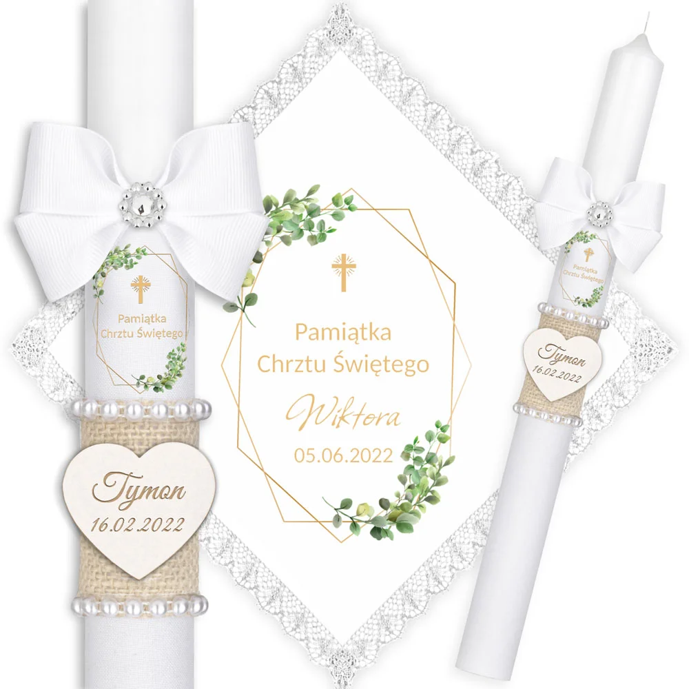 ✅ świeca na chrzest wraz z personalizacją (imieniem dziecka i datą chrztu),