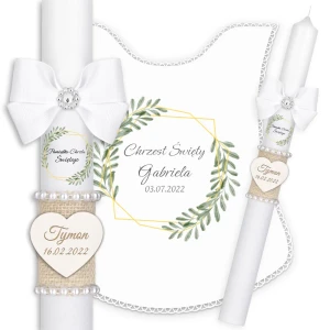 ✅ personalizacja (imię oraz data chrztu) na świecy oraz szatce.