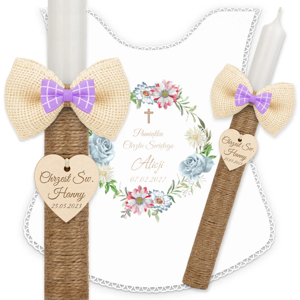 ✅ personalizacja (imię oraz data chrztu) na świecy oraz szatce.