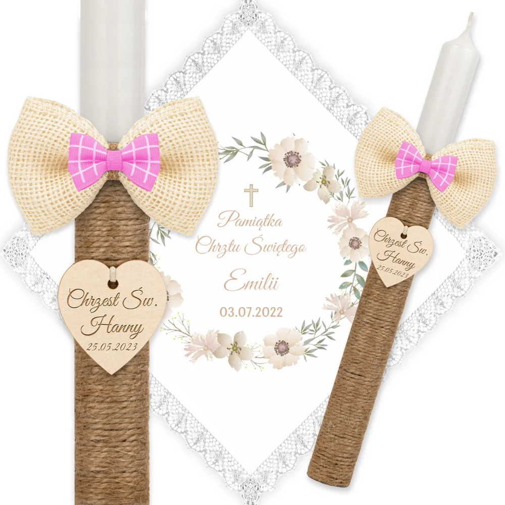 ✅ personalizacja (imię oraz data chrztu) na świecy oraz szatce.