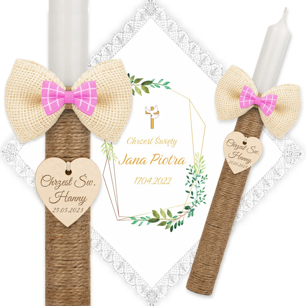 ✅ personalizacja (imię oraz data chrztu) na świecy oraz szatce.