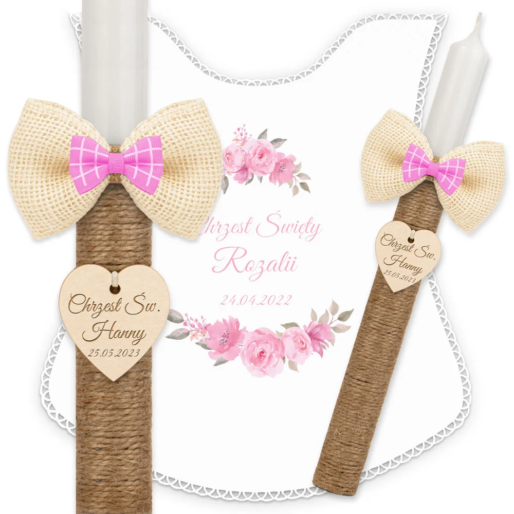 ✅ personalizacja (imię oraz data chrztu) na świecy oraz szatce.