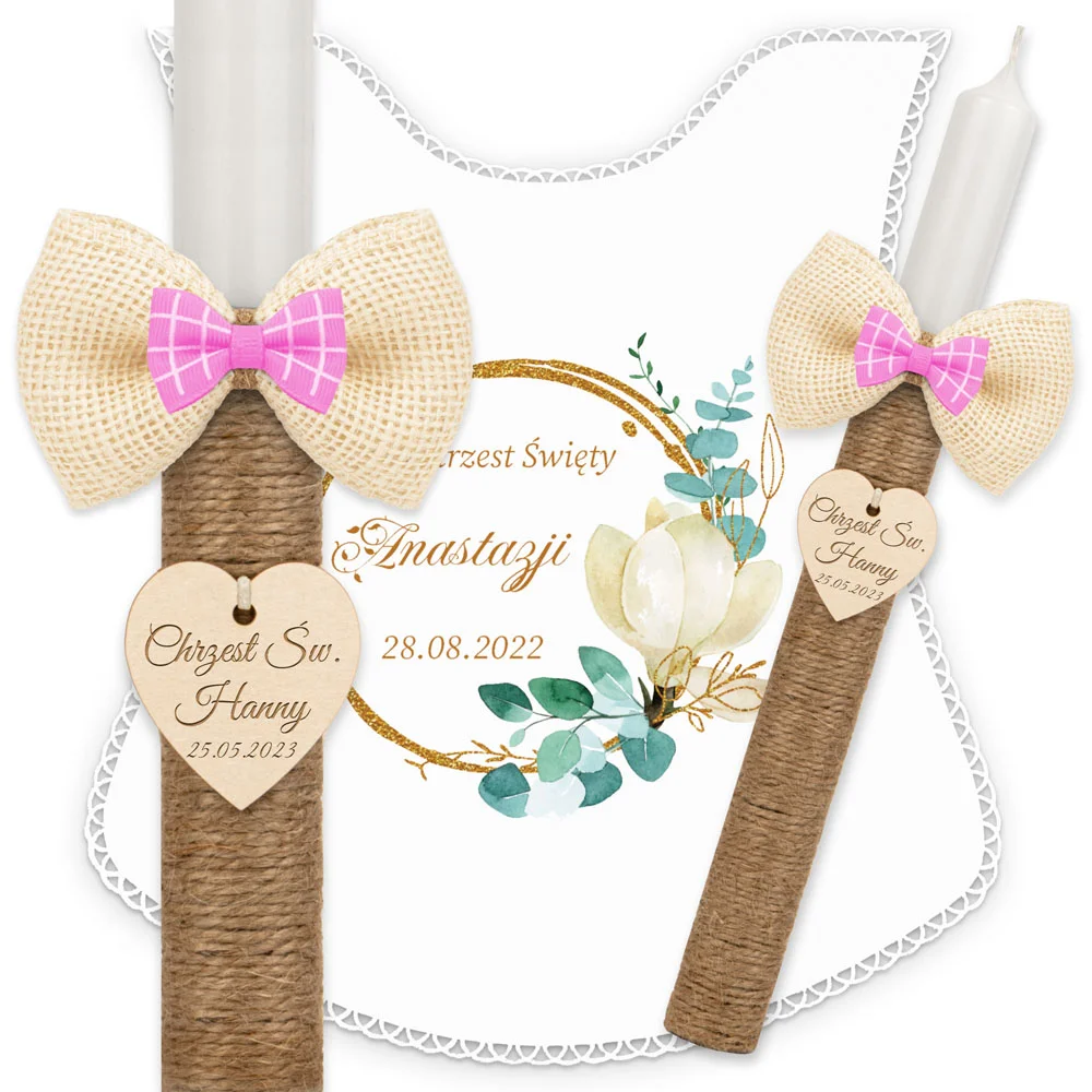 ✅ personalizacja (imię oraz data chrztu) na świecy oraz szatce.